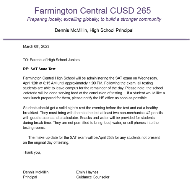 SAT Exam - Wednesday, April 12th, 2023