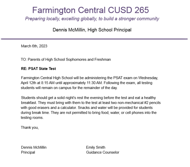 PSAT Exam - Wednesday, April 12th, 2023