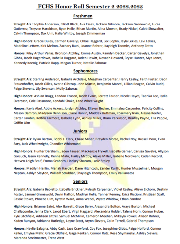 FCHS Honor Roll Semester 2