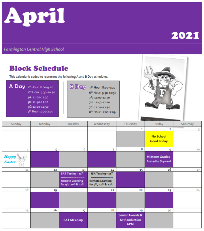 A/B Day Schedule - April 2021