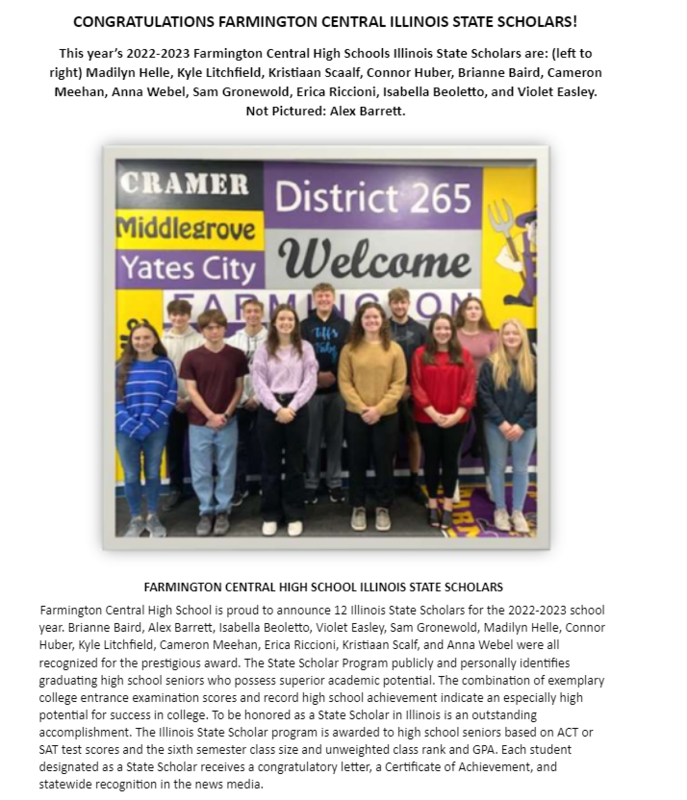 Congrats to Farmington Central Illinois State Scholars!